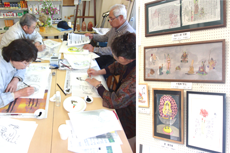仏さまを写し取って心を穏やかに。初心者でも気軽に参加できる教室で、出来上がった作品はご自宅で飾ることもできるほどの完成度です。